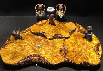 紅豆杉茶盤是用來盛茶杯的,材質(zhì)廣泛,款式多樣,圓月形、棋盤形……等等。但不管什么材質(zhì)和式樣,最重要也是四字訣:寬、平、淺、白。就是盤面要寬,以便就客人人數(shù)多寡,可以放多幾個杯;盤底要平,才不會使茶杯不穩(wěn),易于搖晃;邊要淺,色要白,這都是為了烘托茶杯、茶壺,使之雅觀。